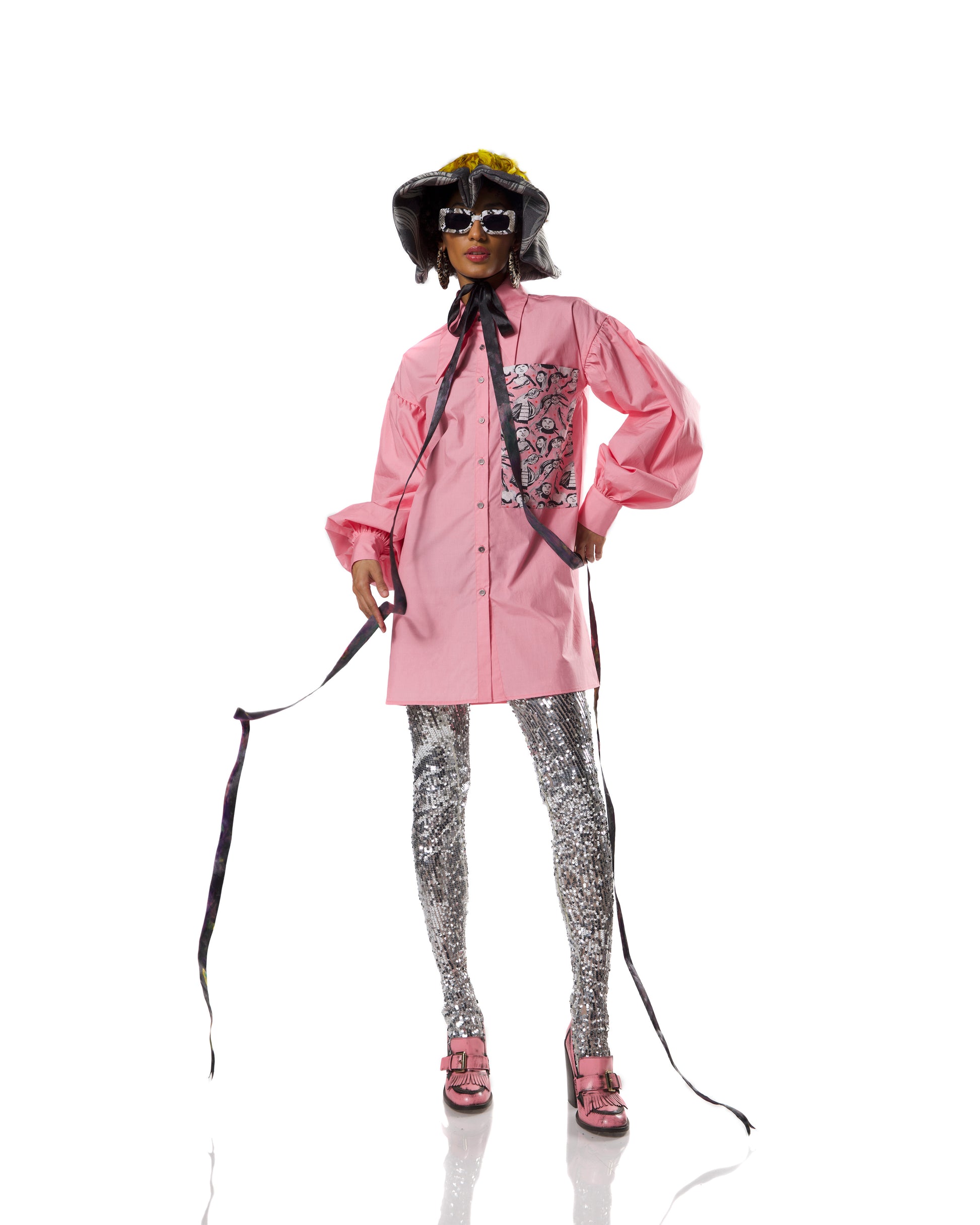 Long point collar with oversized pocket and drop shoulder shirt dress